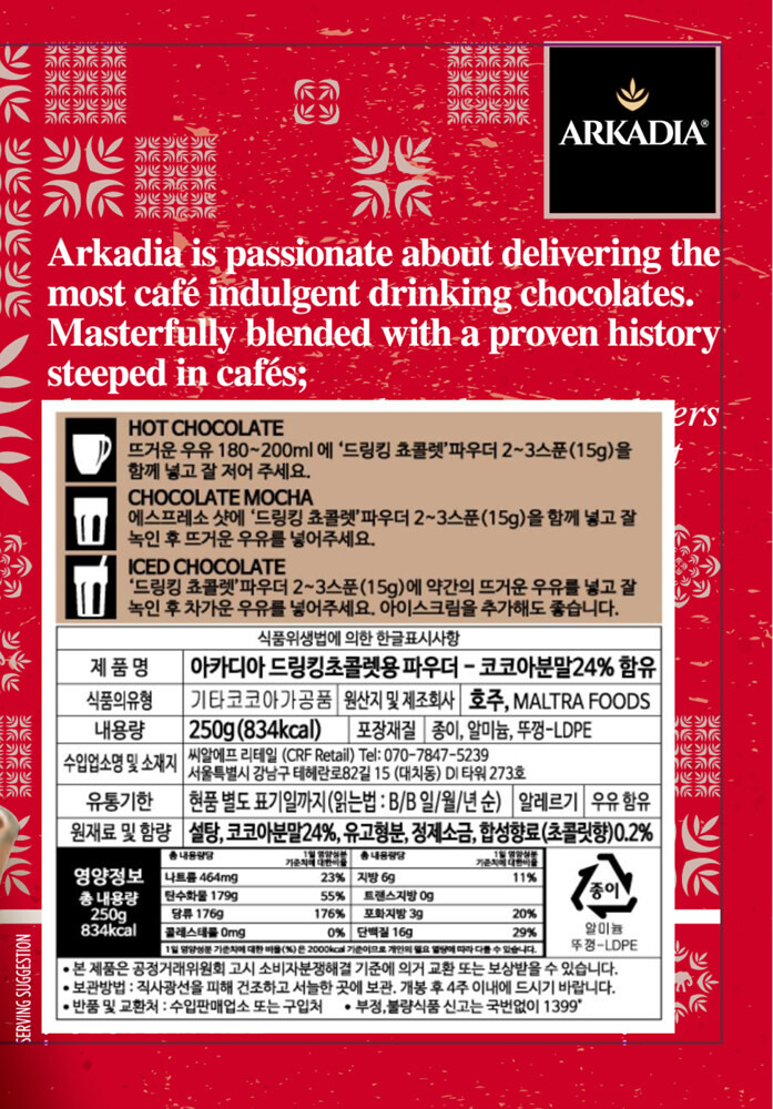 [CAFE]Arkadia 드링킹쵸콜렛(Drinking Chololate) 240g