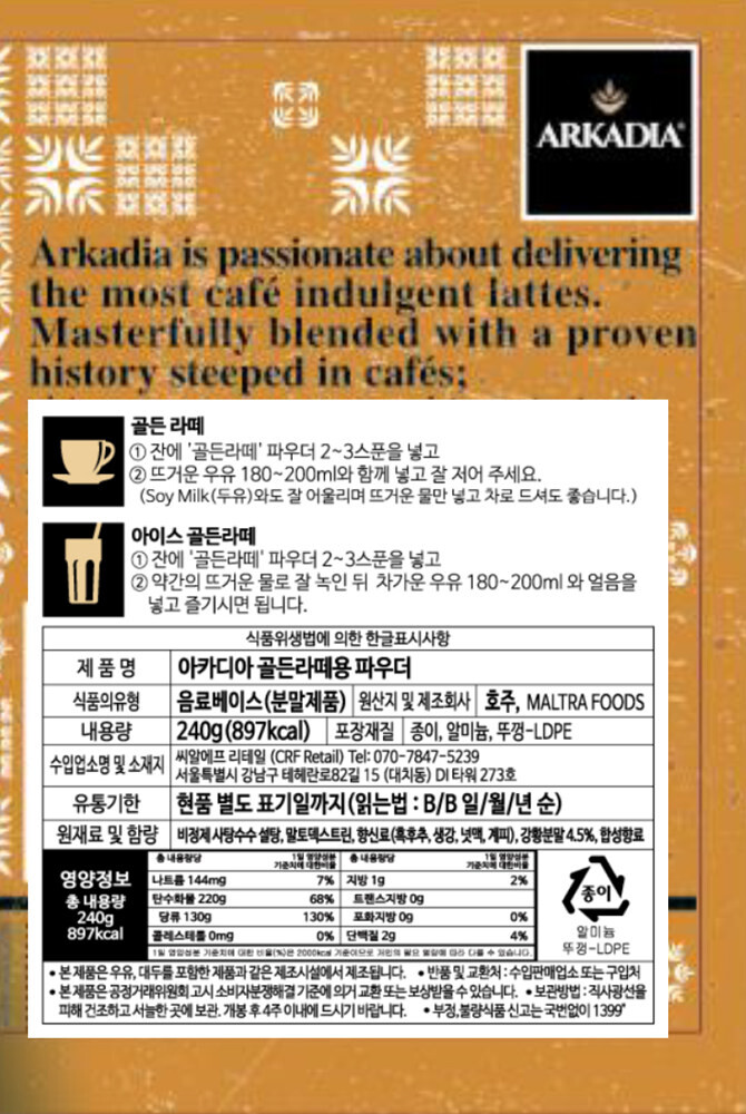[CAFE]Arkadia 터메릭라테(Turmeric Latte) 240g X 6개